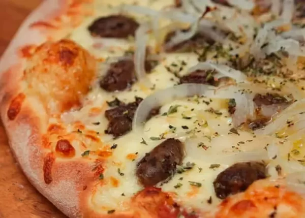 Um clássico aqui no Sul, a pizza é feita com queijo muçarela, coração de galinha, salsa e cebolinha picada.